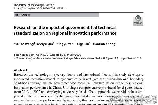 我校在《Journal of Technology Transfer》上刊发王育晓教授团队文章