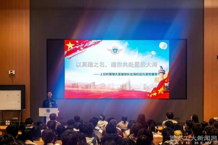 2026年上半年征兵宣传工作启动以来,学校先后通过官网、官微连续发布征兵倡议书、政策指南和“青春之我 不负韶华”宣传片。在经纬广场、学生宿舍等多处设立宣传点、张贴宣传海报、分发宣传手册,营造浓厚氛围。先后邀请未央区人武部来校作《强国必须强军,军强才能国安》主题宣讲,系统解读形势与政策;邀请优秀退役复学学生、曾服役八年的设计学院陈圆同学现场分享军营成长故事,以“身边人讲身边事”增强感染力。3月12日,学校联合未央区人武部特邀空降兵某部宣讲团进校,举办“以英雄之名,邀你共赴星辰大海”主题宣讲会。国旗护卫队也积极发挥国防教育先锋作用,除承担学校升旗任务外,还赴附属中、小学举行升旗及天安门广场国旗展示活动,进一步拓展了国防和爱国主义教育的辐射面。