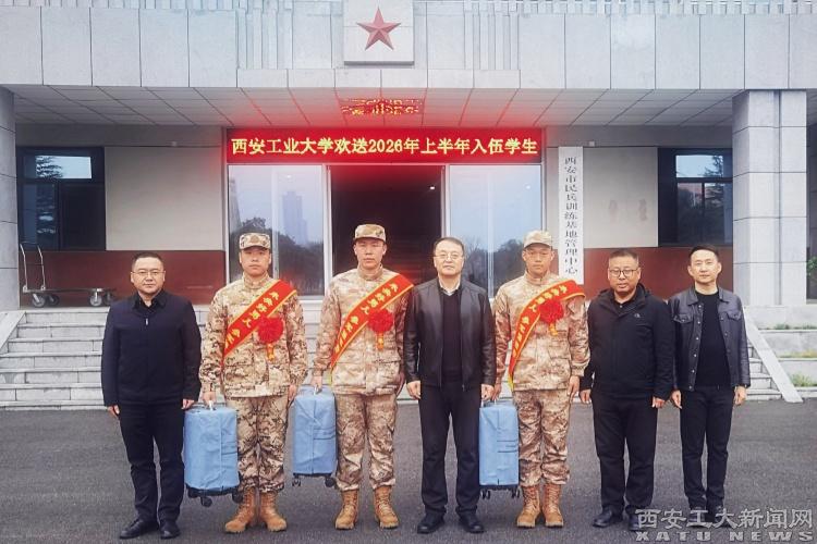 3月13日下午,我校2026年上半年入伍学生欢送会在西安市民兵训练基地举行。欢送会上,校党委副书记马福一行代表学校向我校入伍学生表示祝贺、赠送纪念品,并勉励大家要传承兵工精神,苦练胜战本领,早日成长为合格的新时代革命军人,同时表示学校将全力做好征兵各项政策落实和服务保障工作。三位入伍学生一致表态,将牢记校风校训,在军营淬火成钢,在战位建功立业,为母校增光添彩。