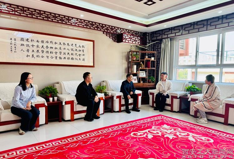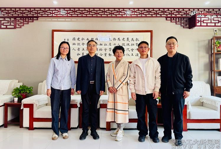 (本网讯)4月9日下午,我校中国书法学院院长王若鸿一行前往西安未央凤凰城小学开展访企拓岗专项活动,旨在深化高校与基础教育单位在书法教育领域的合作,拓宽学生就业渠道,推动书法教育传承发展。校长吴海峰与学院2025届毕业生刘亚鑫热情接待了王若鸿一行。