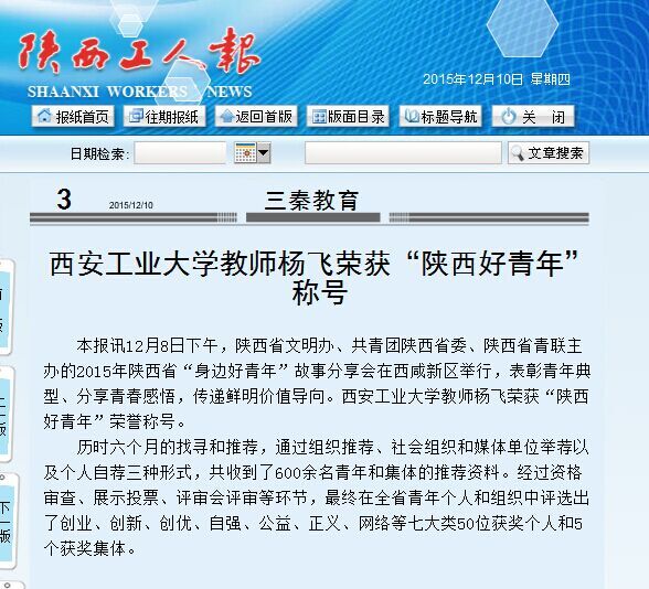 下一篇:西安工业大学教师杨飞荣获“陕西好青年”称号(20151210《陕西日报》)